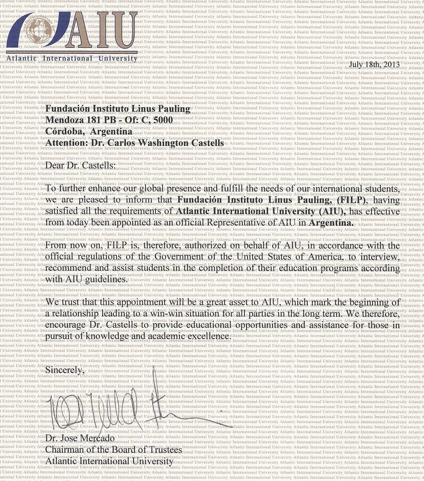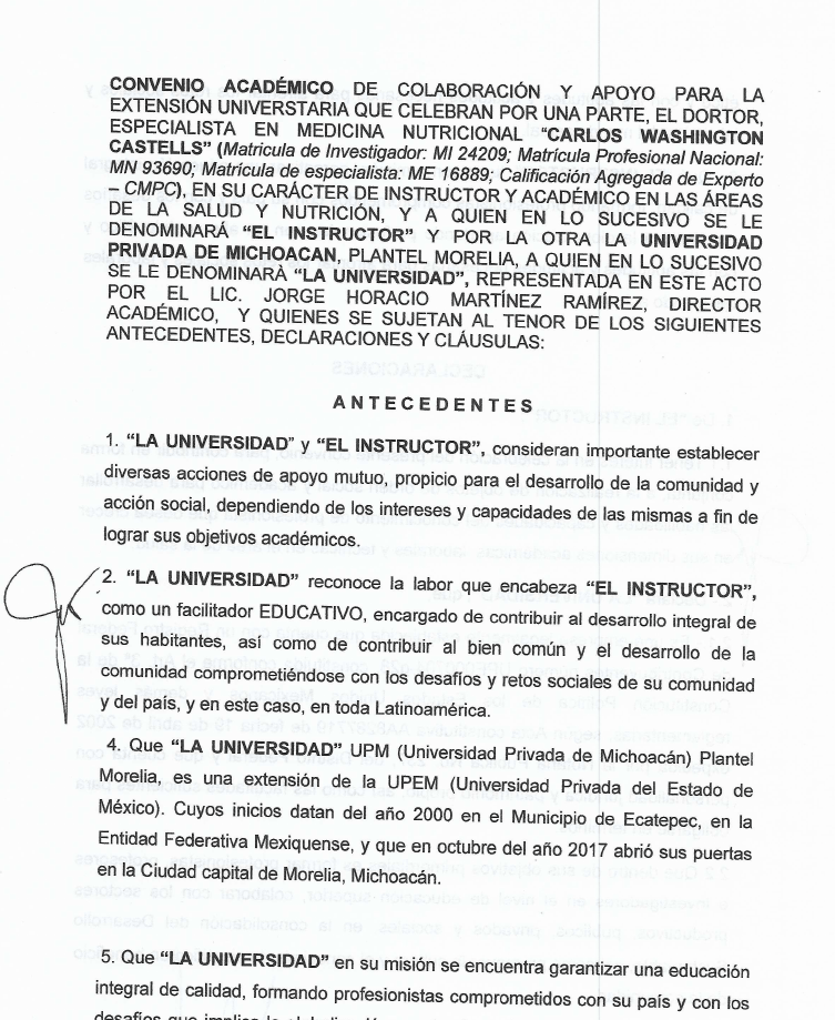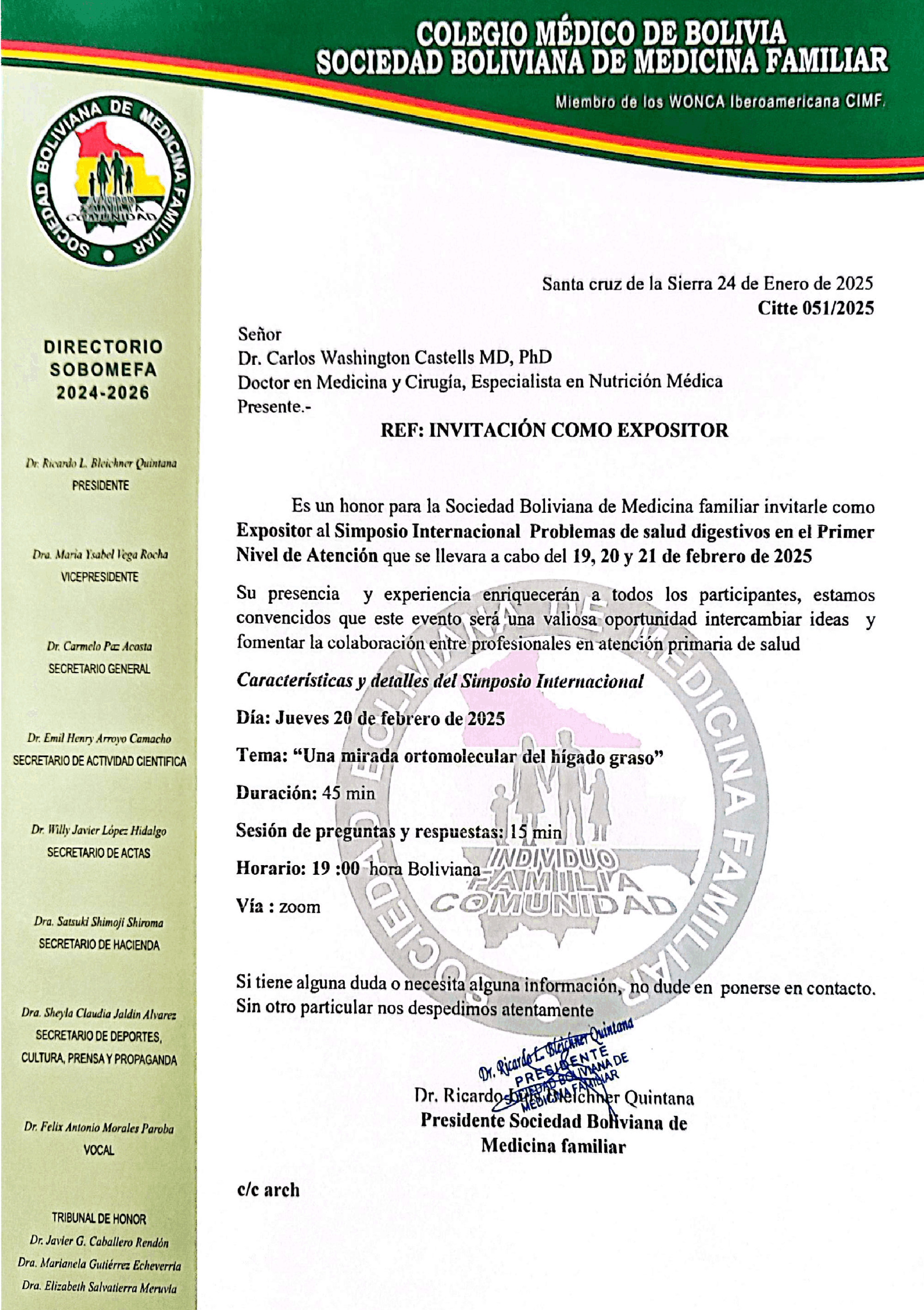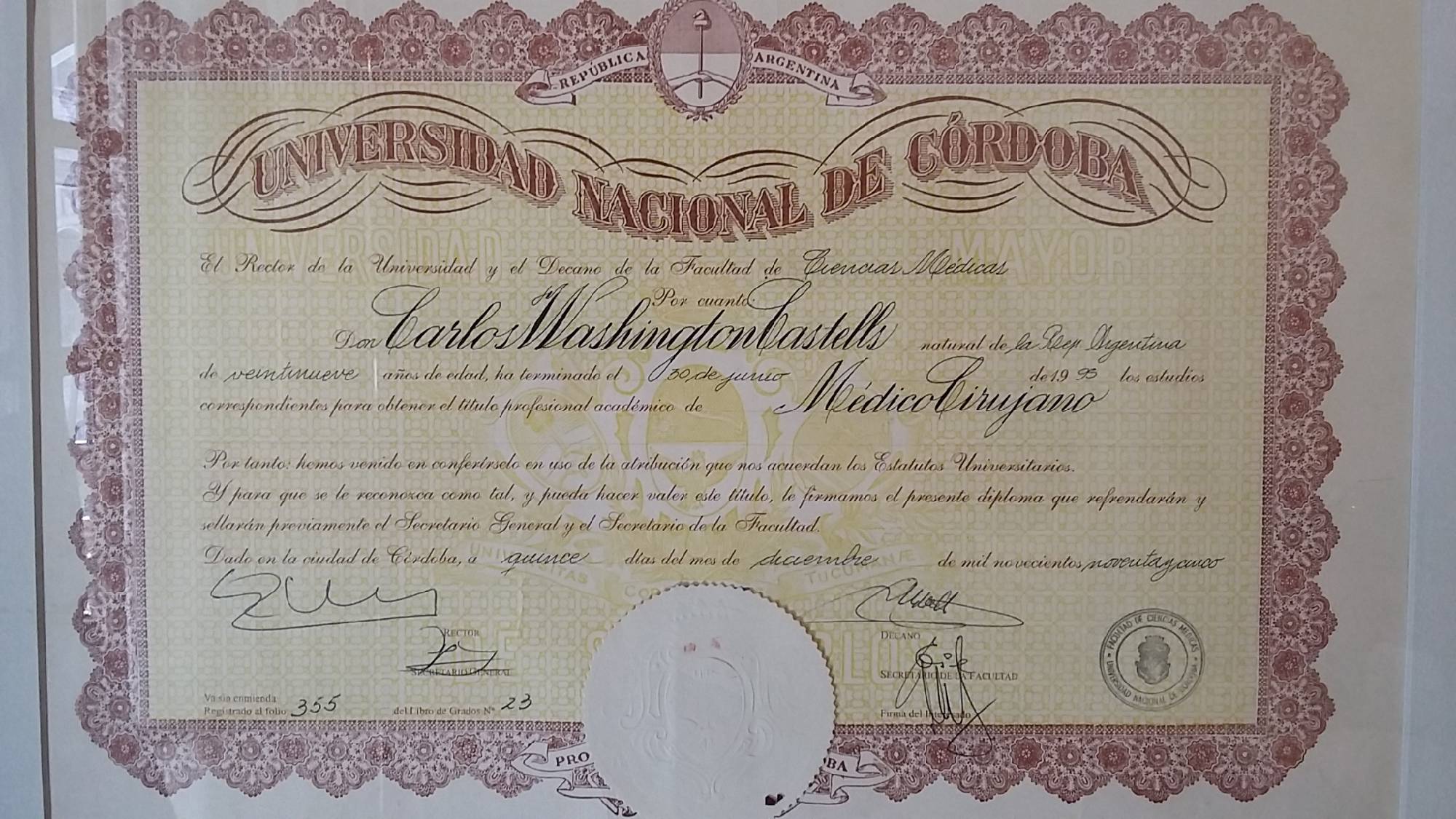Prof. Dr. Carlos Washington Castells , MD, PhD Medico Cirujano - MP 93690 Doctor en Medicina y Cirugía Especialista en Nutrición Médica ME:16889